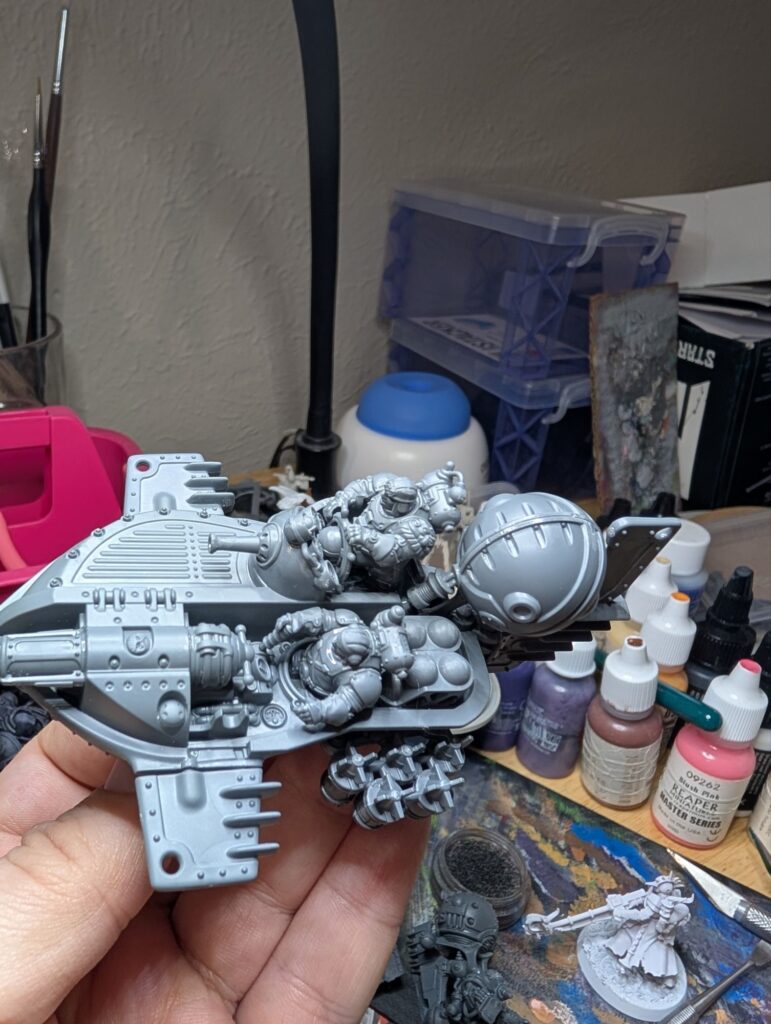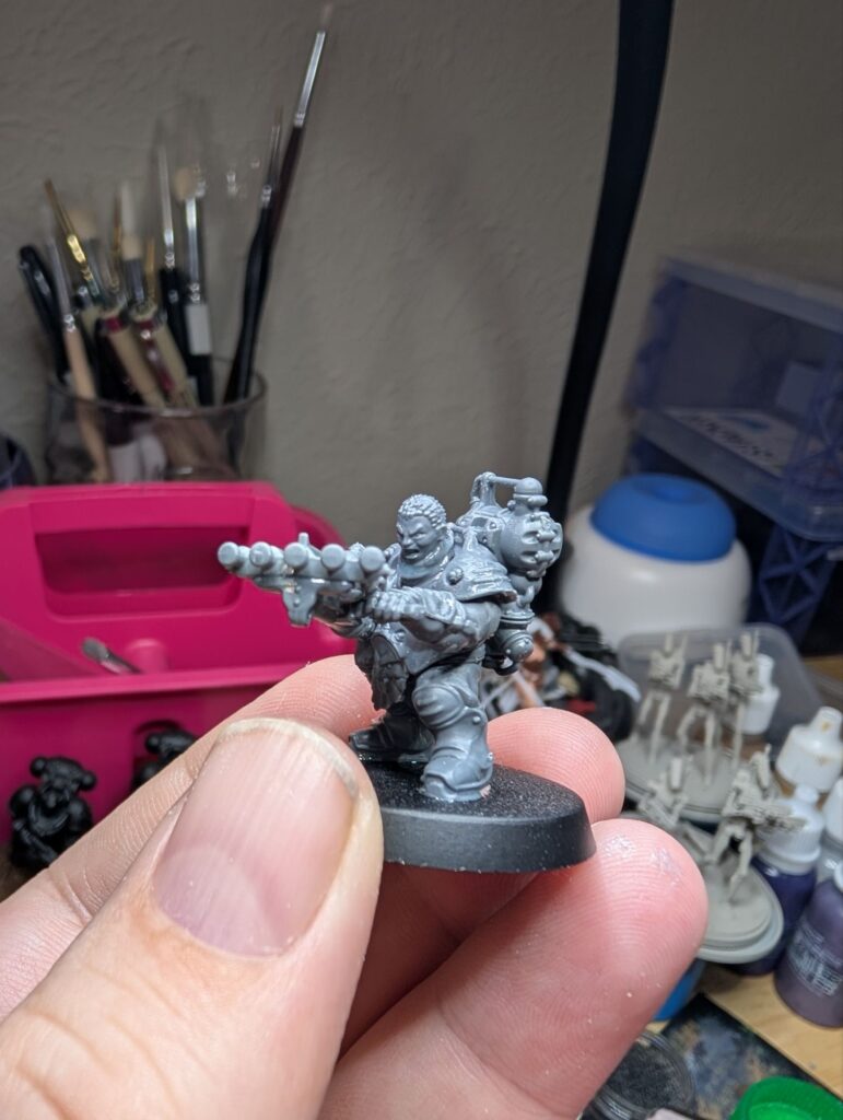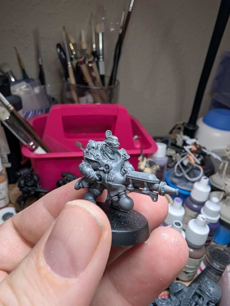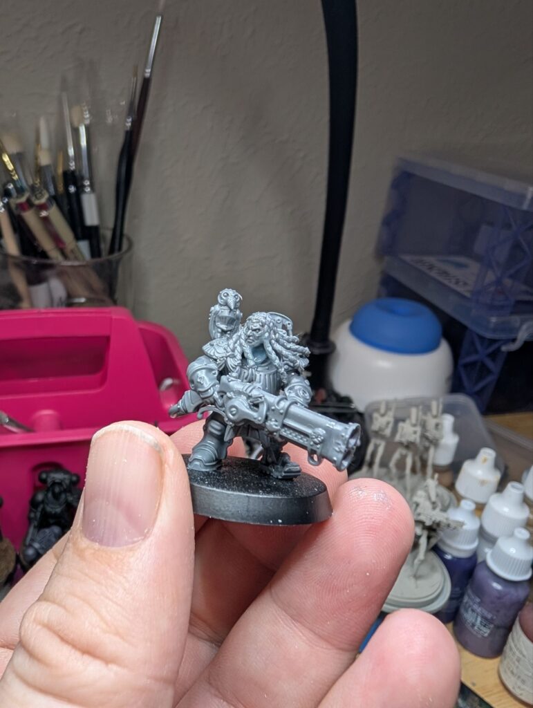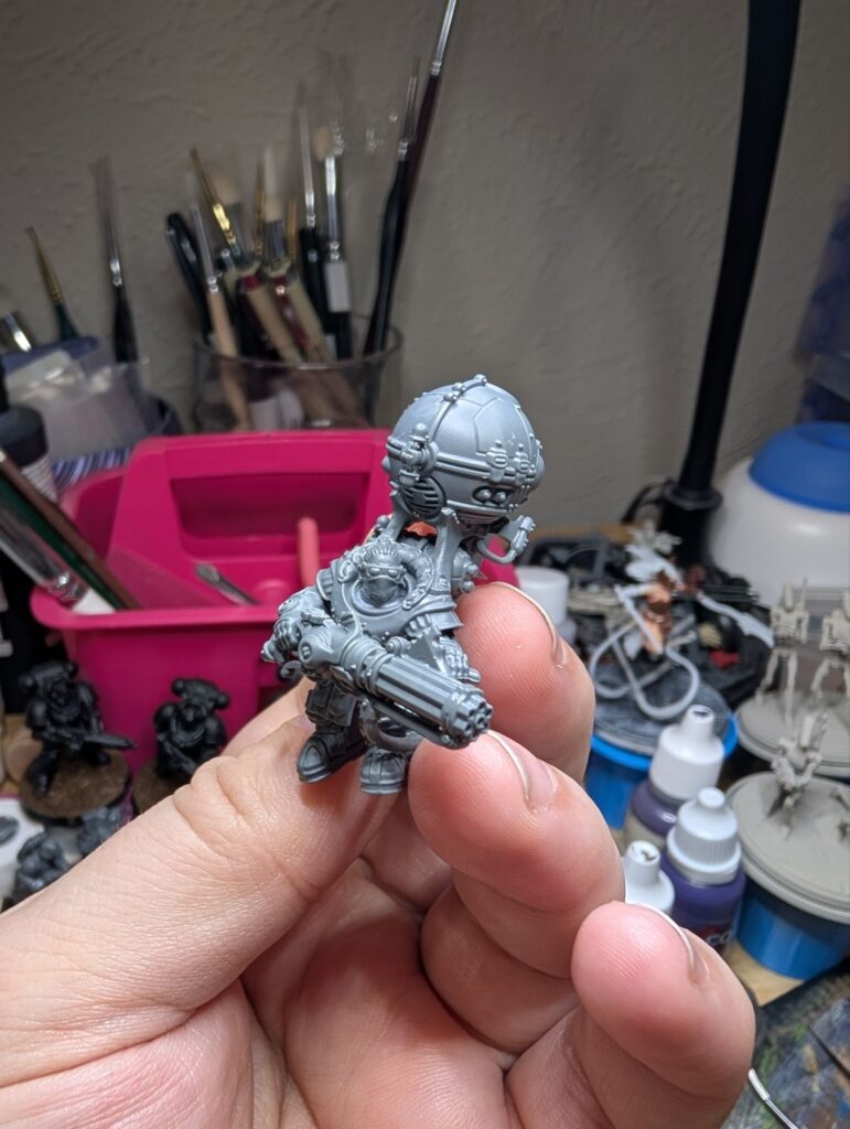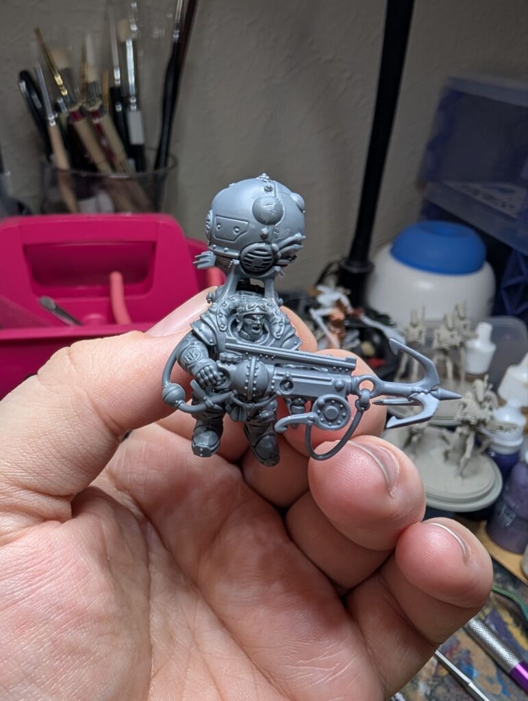 This last weekend, I traded off all of my Star Wars Legion Rebels, a considerable amount, for all of the Karadron Overlords from the Stormbringer magazine, which my partner had the full subscription to. So I’m now the proud owner of about 700 points of KO! And those Votann bits came in handy, as I don’t particularly love the KO’s default metal beard helmets. So the Votann having the option of gender diverse heads really helped me flesh out a neat KO army idea.
